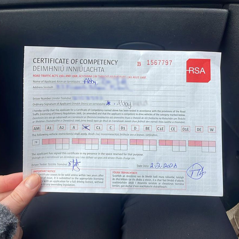 Conor’s patience and words of encouragement helped me to build up my confidence on the road and I can safely say that I wouldn’t have passed my test, let alone at the first attempt , without Conor’s help and guidance.